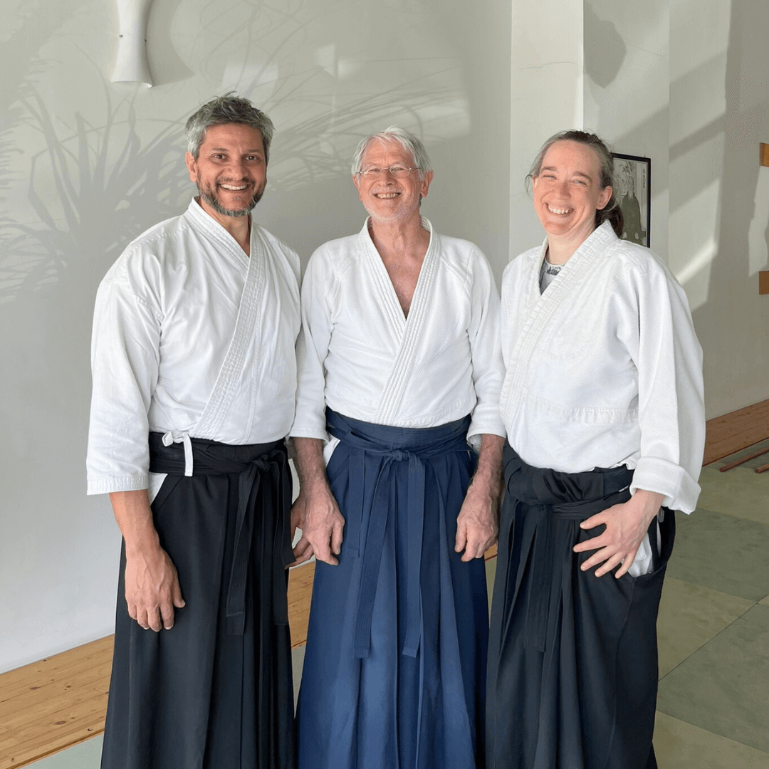 Darüber hinaus sind wir sehr offen für neue Erfahrungen. Deshalb laden wir immer wieder international anerkannte Lehrer:innen ein, bei uns Seminare zu geben, und lassen uns von ihnen inspirieren. Hier sind einige, die schon seit Jahren regelmäßig bei uns zu Gast sind: Lia Suzuki, Léo Tamaki, Daniele Montenegro, Bruno Gonzalez. Als Aikido-Schüler:in hast du den großen Vorteil, dass du dir die Lehrerin oder den Lehrer aussuchen kannst, die oder der dich am meisten anspricht.