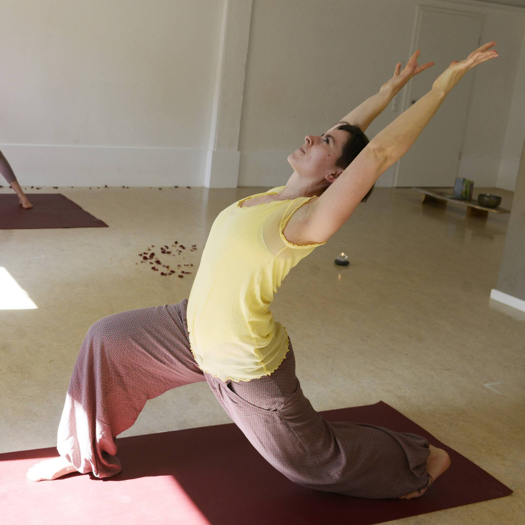 Ich lade dich ein, im Augenblick anzukommen und ganz bei dir selbst zu sein. Je nach Yoga-Praxis aktiv oder gelassen. Streck dich, räkel dich, power dich aus, schwitze, lerne deinen Körper neu kennen, komme außer Atem und gelange wieder zu Atem, komm ins Gleichgewicht, entspanne in tiefer Zufriedenheit mit dir selbst und spüre deine wiedergewonnene Energie.