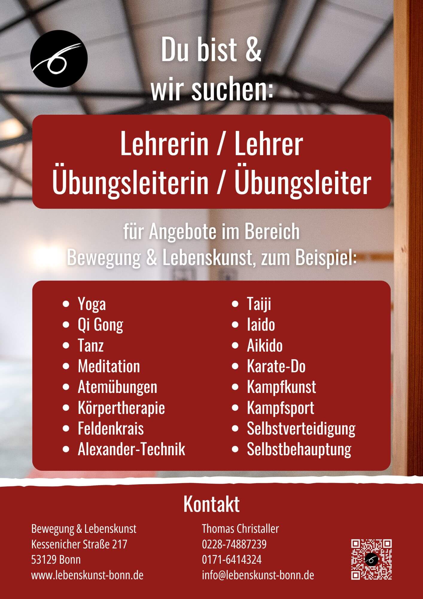 Wir suchen Lehrer:innen & Kursleitende für Angebote im Bereich Bewegung & Lebenskunst, zum Beispiel: